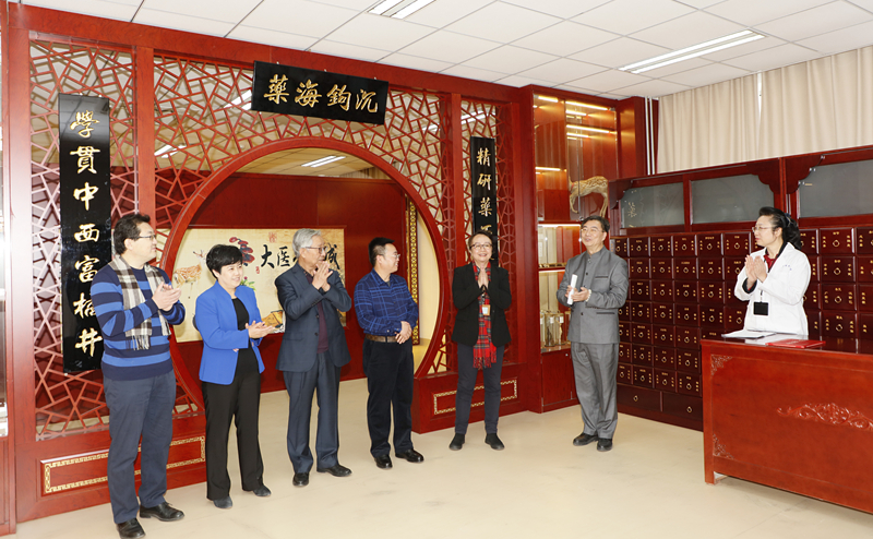 孙传新部长谈到,曾作为中医学院党委书记参与了中药实训室的建设工作。在中医学院向良乡校区搬迁建设之际,北京四方中药饮片有限公司陈景泰董事长关心学校建设,为中医学院中药饮片实训室更换了新的中药展柜。孙部长还讲到,高学敏教授在标本室建设过程中不辞辛苦、几次亲临现场进行指导,亲自书写的“药海钩沉,学贯中西富橘井,精研药石誉杏林”对联为实训室增添了浓浓的中医药文化氛围,体现了老专家对学校发展的拳拳之心、殷殷之情,为我们树立了榜样。